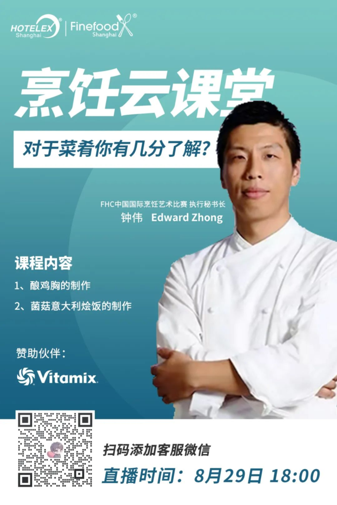 2022年8月29日晚18-19点,我们将特邀FHC中国国际烹饪艺术比赛-执行秘书长Edward老师莅临直播间。