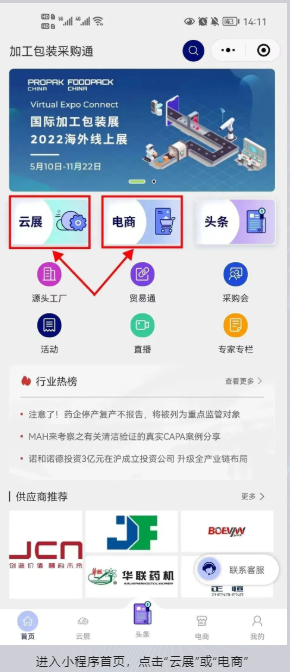 “上海加工包装联展(ProPak China & FoodPack China)”携手“制药包装展(P-MEC)”,于2022年11月22日-2023年1月20日期间在“加工包装采购通”小程序平台上推出“云上贸易季”系列活动,助力企业线上获订单、拓市场。