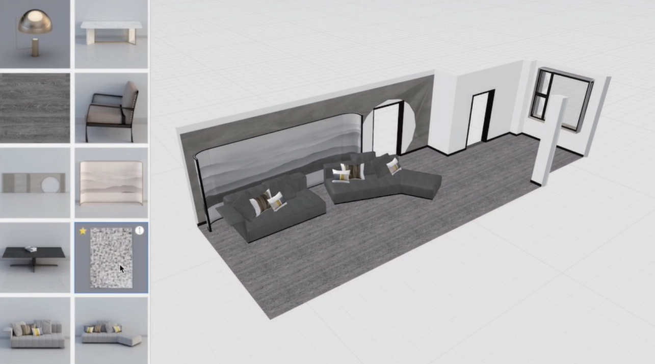 通过3D模型和渲染,将家具实体转化成数字化产品,突破空间的障碍,实现卖家和买家异地实时沟通,效果展示和变换场景、材质、尺寸。